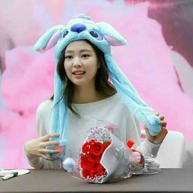 Plush TWICE Jennie Blackpink Love Pink Stitch Ear Wig Hat